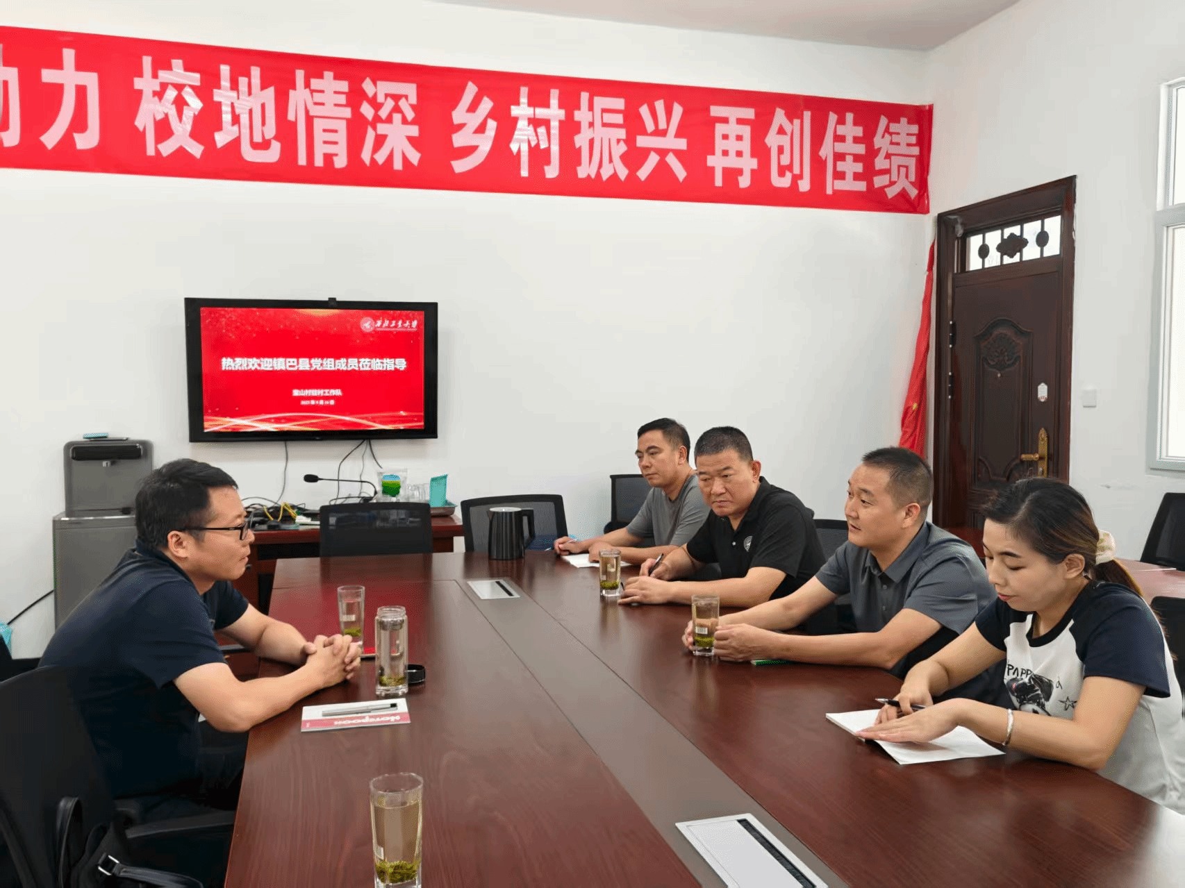 巴山镇宝山村和栗子垭村是我校在镇巴县定点帮扶的两个村,调研期间,我校驻村四名队员就2025年度定点帮扶工作完成情况及下一步工作计划进行了专题汇报。张超从地域、人文、产业等方面详细介绍了巴山镇产业经济发展情况,充分肯定西工大近年来对巴山镇产业培育、基础设施建设等方面作出的积极贡献,并对帮扶团给予的全方位支持表示感谢。